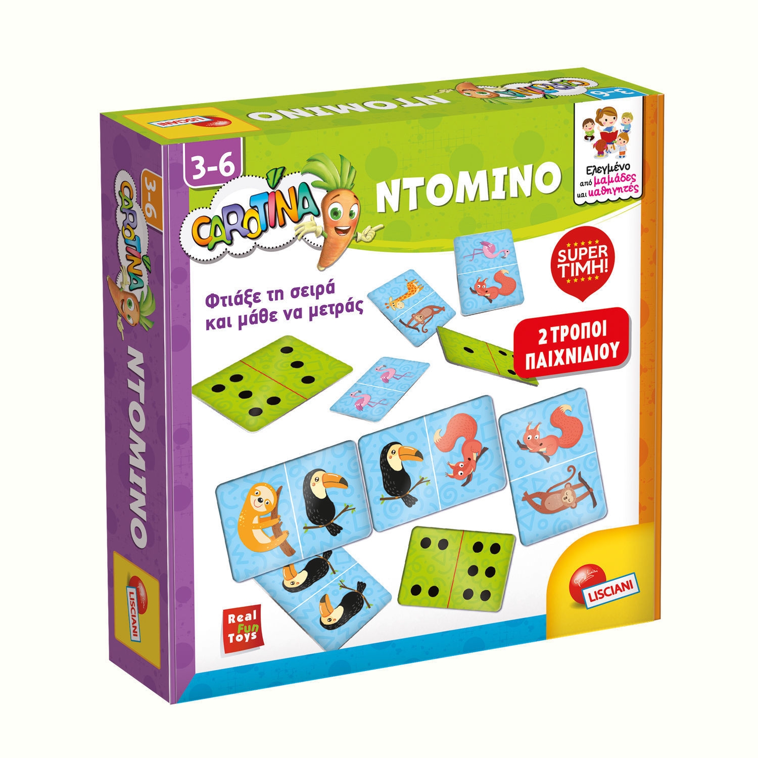 Ντόμινο Lisciani - Εκπαιδευτικό Παιχνίδι 2 σε 1 με Αριθμούς & Ζώα 3-6 Ετών Carotina 109432