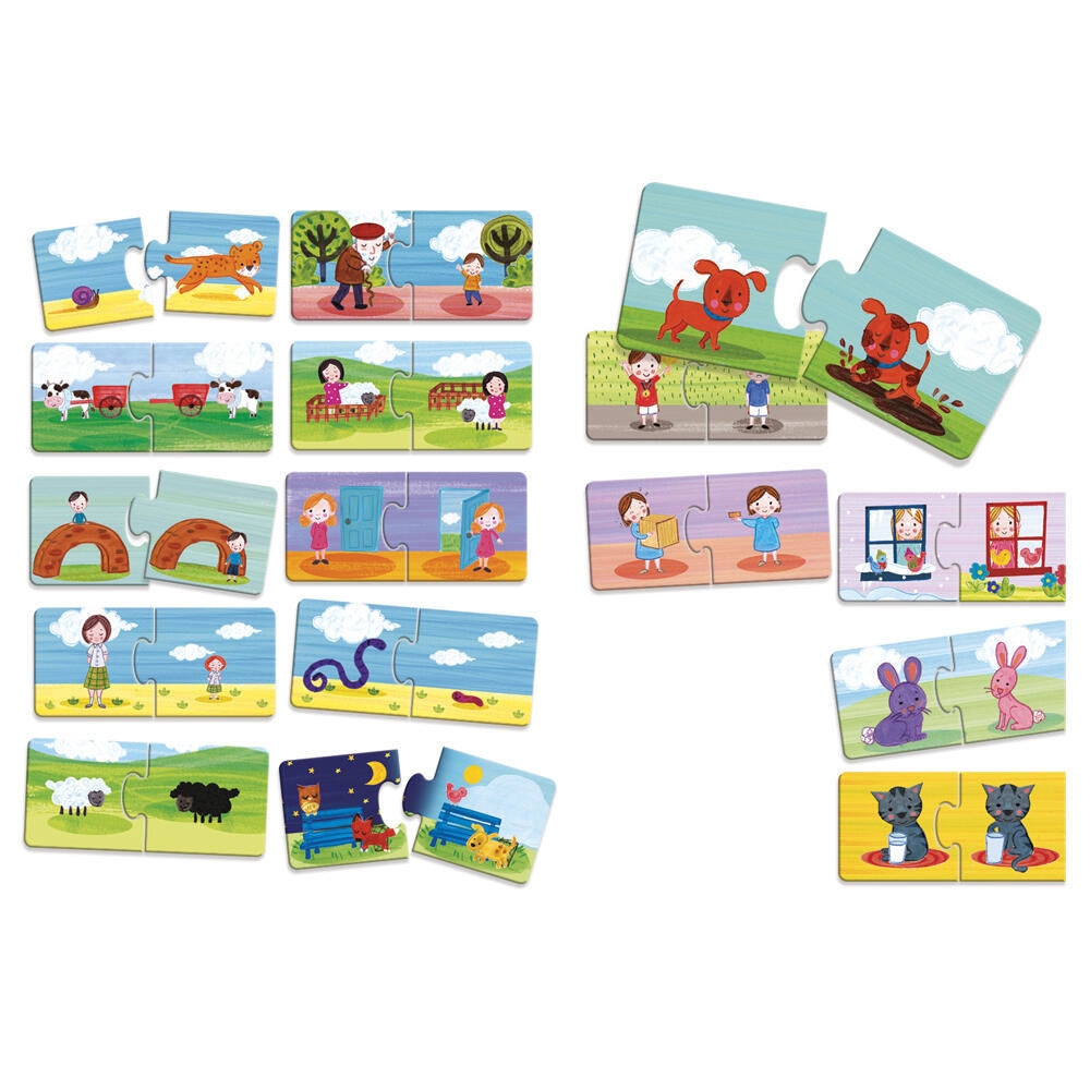 -Πρώτη επαφή με αντίθετα: ψηλό/χαμηλό, μακρύ/κοντό, μέρα/νύχτα, χαρά/λύπη κτλ.
