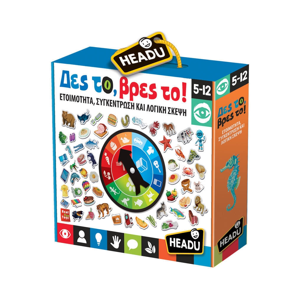 Ετοιμότητα, συγκέντρωση και λογική σκέψη! Γυρίστε τον τροχό και βρείτε τα περισσότερα σωστά αντικείμενα! Το “Δες το, βρες το” είναι ένας συναρπαστικό παιχνίδι παρατήρησης και ετοιμότητας με διαφορετικούς τρόπους παιχνιδιού, που επιτρέπουν σε μικρούς και μεγάλους να παίζουν μαζί.
