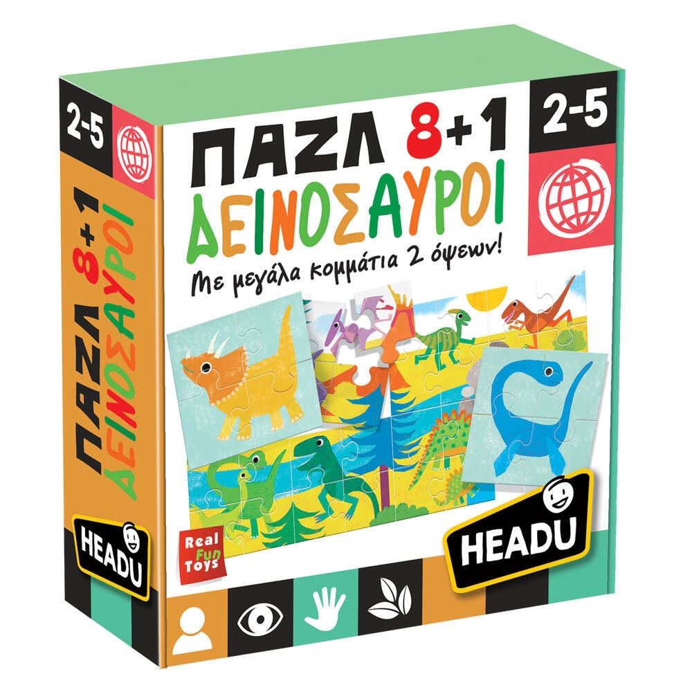 Εκπαιδευτικό Επιτραπέζιο Παιχνίδι Παζλ 8+1 Δεινόσαυροι Headu