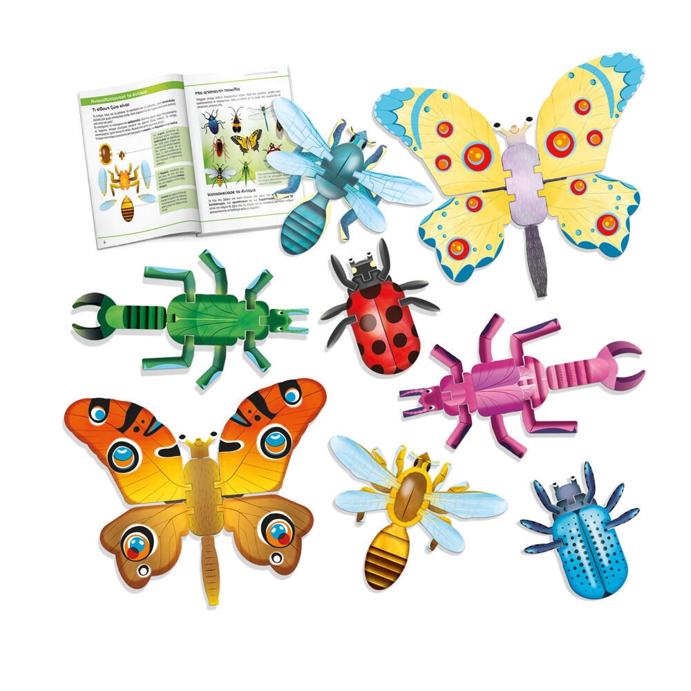 Κατασκεύασε και ανακάλυψε την ανατομία τους! Γνωρίζατε ότι οι πεταλούδες έχουν το σώμα τους χωρισμένο σε τρία μέρη; Και ότι οι πασχαλίτσες έχουν έξι πόδια; Με αυτό το σετ, μπορείτε να δημιουργήσετε τέσσερις τύπους εντόμων αλλά και να δημιουργήσετε και πολλά άλλα, απελευθερώνοντας τη φαντασία σας! Περιέχει επίσης ένα πλούσιο εικονογραφημένο βιβλίο, με πληροφορίες και περίεργα για τα έντομα. Γνώση και ταξινόμηση των εντόμων • Αναγνώριση των μερών του σώματος των εντόμων • Ανάπτυξη χειροκίνητων δεξιοτήτων