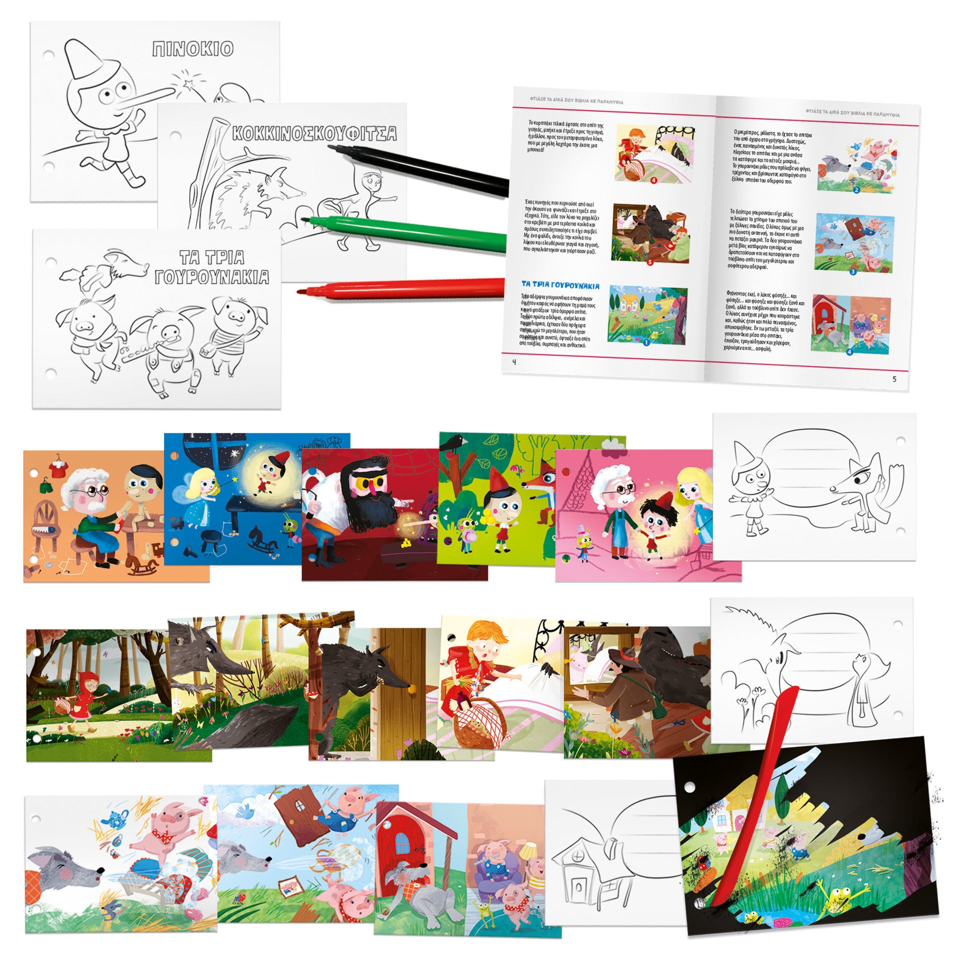 Ανακαλύψτε τα σχέδια που κρύβονται στις κάρτες, ξύνοντας με την κατάλληλη μύτη. Παρατηρήστε τις ακολουθίες των παραμυθιών και φτιάξτε