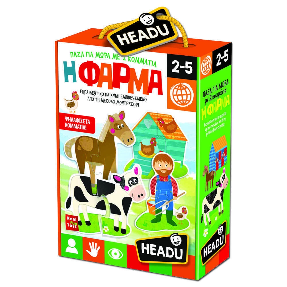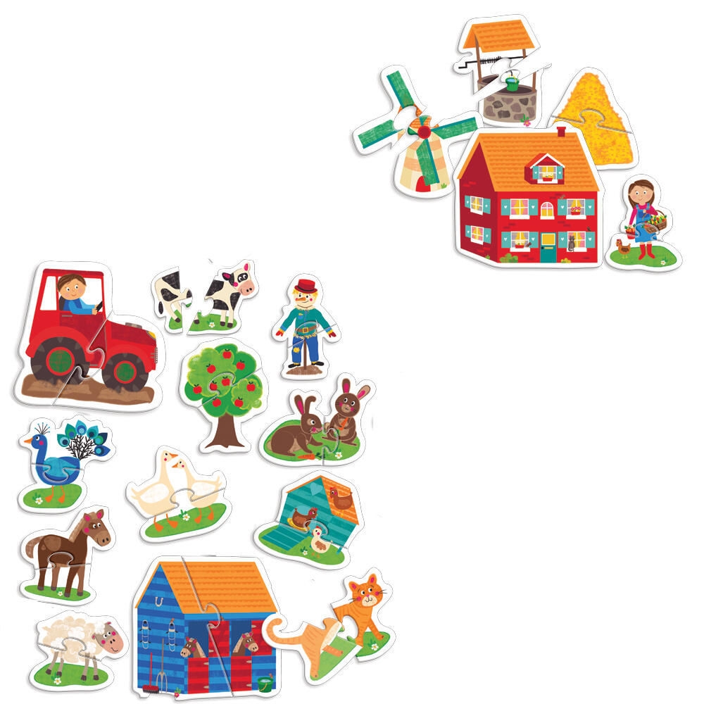 Φτιάξε πολλά παζλ με θέμα τη φάρμα και δημιούργησε διάφορα μέρη και αντικείμενα. Κάθε παζλ αποτελείται από 2 κομμάτια με υλικά για ψηλάφιση και με διάφορα σχήματα για σωστή συναρμολόγηση.