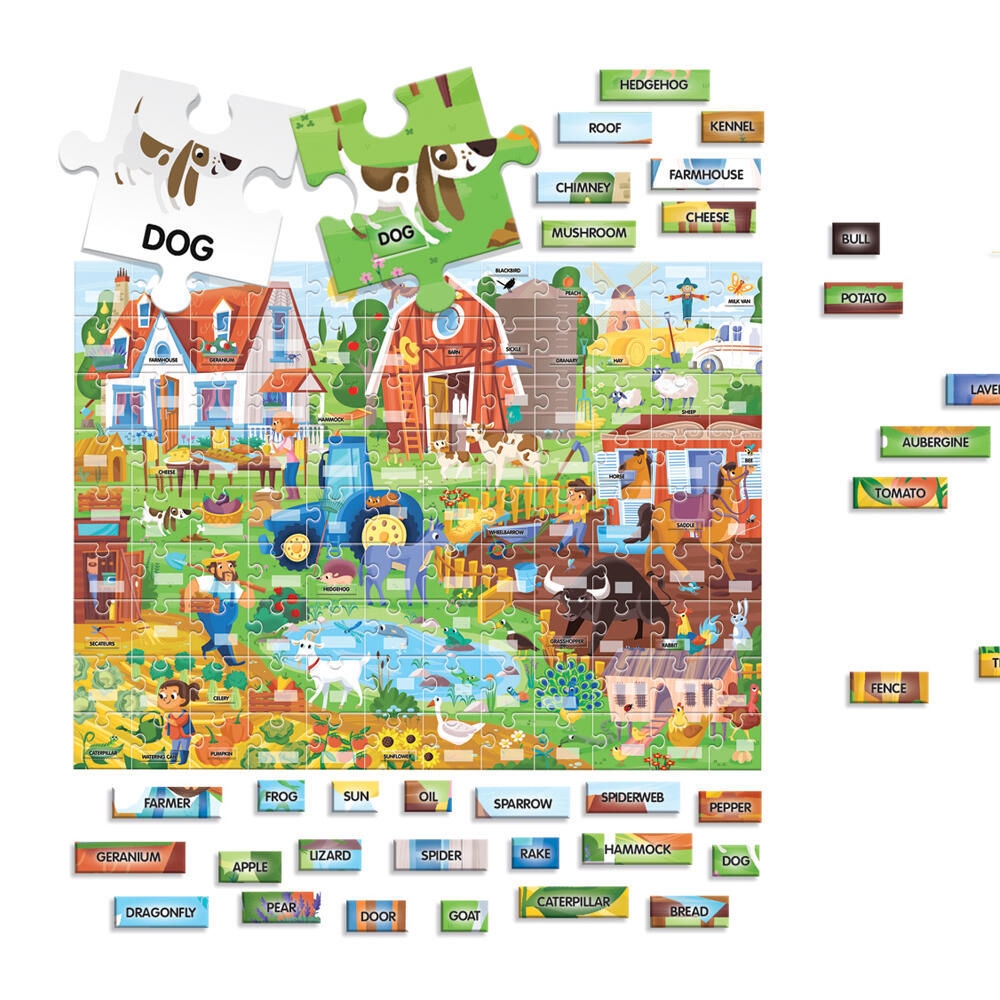 Σίγουρη διδακτική μέθοδος, για να μάθεις περισσότερες από 100 αγγλικές λέξεις! Το σετ αποτελείται από ανθεκτικά υλικά: 100 αυτοκόλλητα που αφαιρούνται και παζλ γίγας με κομμάτια ειδικά για μικρά παιδιά. Κατεβάστε την εφαρμογή που προφέρει τις λέξεις και για προφορική εξάσκηση!