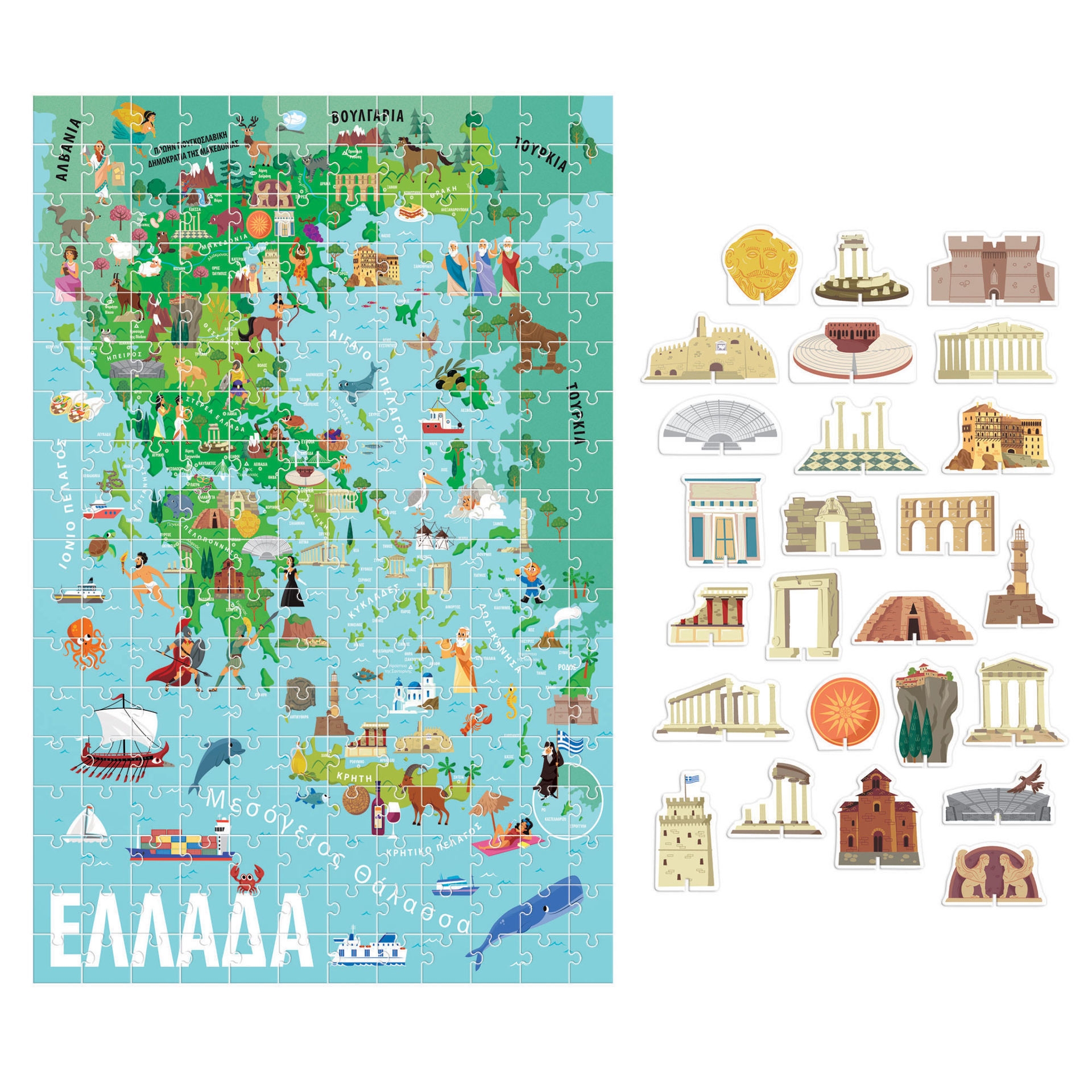 Ανακάλυψε τις ομορφιές της Ελλάδας με αυτό το παζλ-γίγας και αντιστοίχισε τα σημαντικότερα τρισδιάστατα μνημεία με τις γεωγραφικές τοποθεσίες τους.