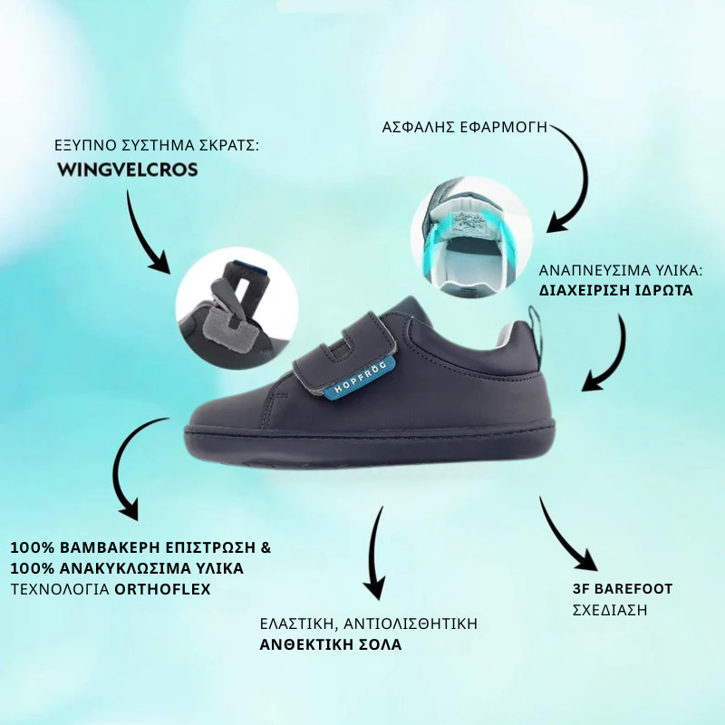 Τα παιδικά παπούτσια Casual της Hopfrög Kids έχουν σχεδιαστεί για να υποστηρίζουν τη φυσική ανάπτυξη του ποδιού, προσφέροντας άνεση, σταθερότητα και ανεξαρτησία στο παιδί. Ιδανικά για καθημερινή χρήση, προσφέρουν την αίσθηση περπατήματος με γυμνά πόδια, ενισχύοντας τη σωστή κινητική εξέλιξη των παιδιών.