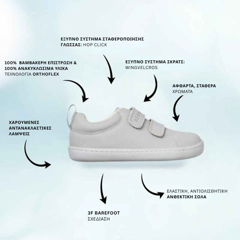 Τα Junior της Hopfrög είναι παπούτσια Βarefoot σχεδίασης, γεμάτα τεχνολογίες, σχεδιασμένα για υγιή ανάπτυξη, άνεση και ελευθερία σε κάθε βήμα. Ο σχεδιασμός Βarefoot μιμείται την εμπειρία του περπατήματος χωρίς παπούτσια, προσφέροντας στο παιδί ελευθερία κινήσεων και συμβάλλοντας στην υγιή ανάπτυξη του πέλματος και των δαχτύλων. Μικρά σε μέγεθος, μεγάλα σε δυνατότητες, αποτελούν την ιδανική επιλογή για γονείς που θέλουν το καλύτερο για τα παιδιά τους.