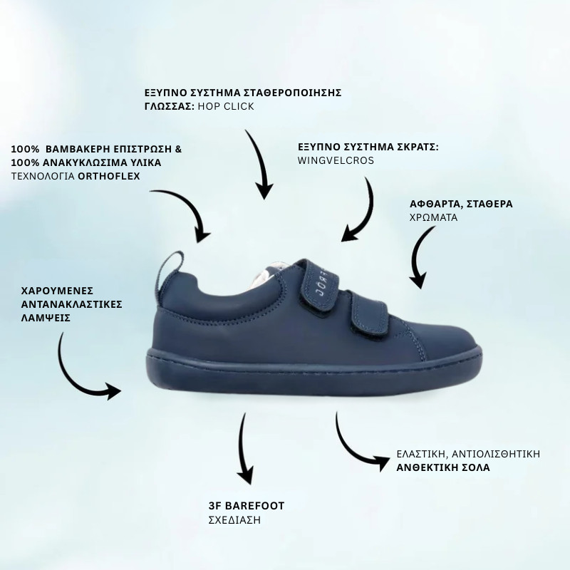 Τα Junior της Hopfrög είναι παπούτσια Βarefoot σχεδίασης, γεμάτα τεχνολογίες, σχεδιασμένα για υγιή ανάπτυξη, άνεση και ελευθερία σε κάθε βήμα. Ο σχεδιασμός Βarefoot μιμείται την εμπειρία του περπατήματος χωρίς παπούτσια, προσφέροντας στο παιδί ελευθερία κινήσεων και συμβάλλοντας στην υγιή ανάπτυξη του πέλματος και των δαχτύλων. Μικρά σε μέγεθος, μεγάλα σε δυνατότητες, αποτελούν την ιδανική επιλογή για γονείς που θέλουν το καλύτερο για τα παιδιά τους.